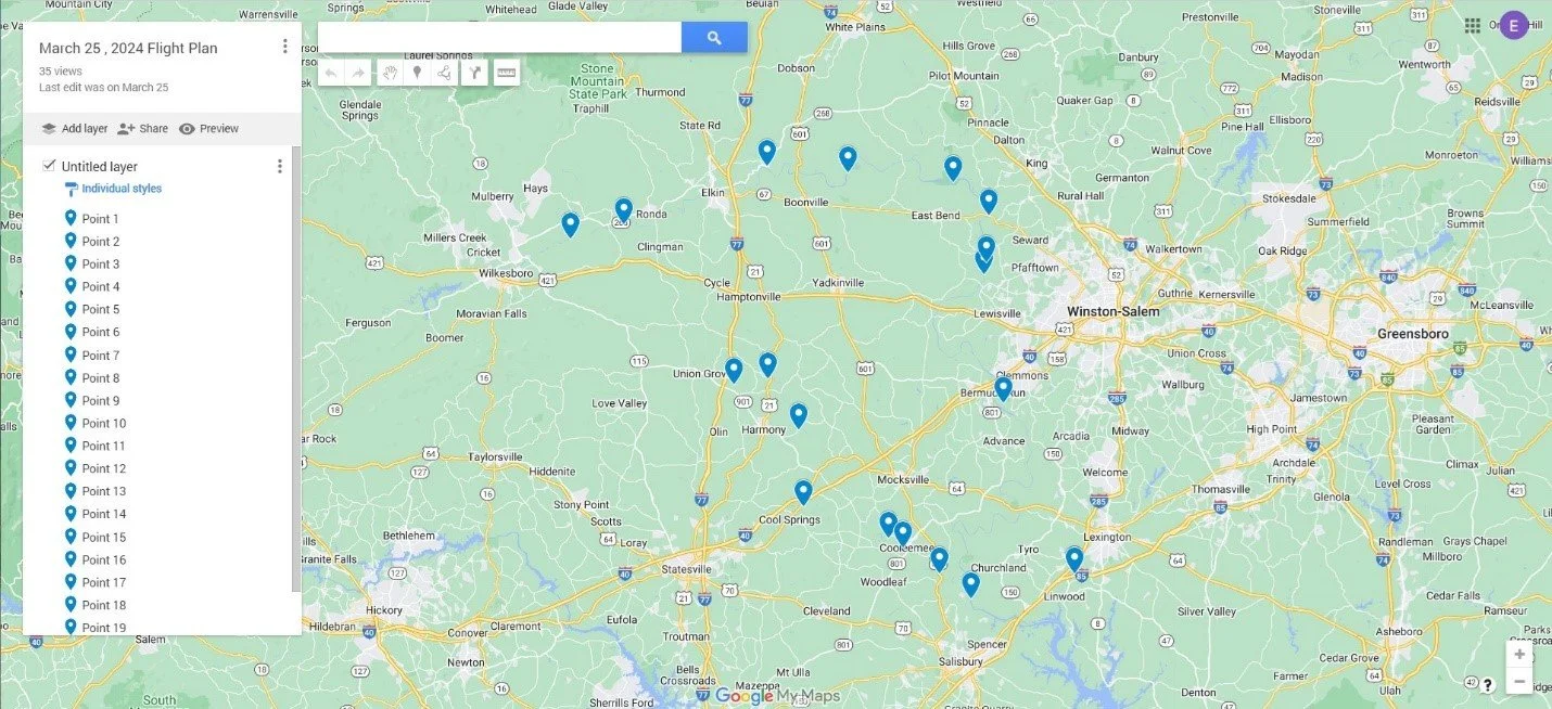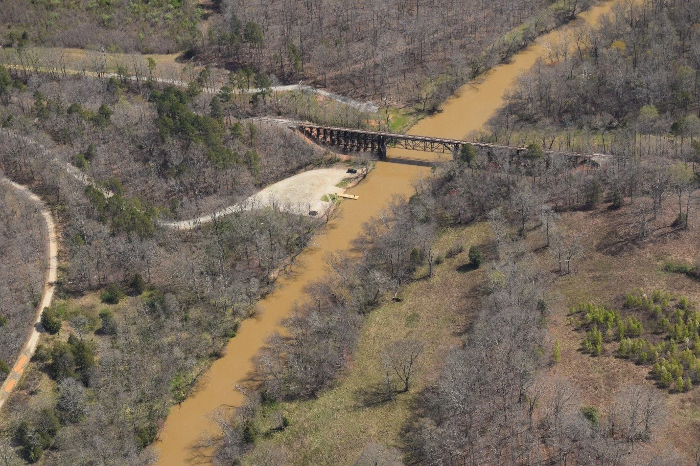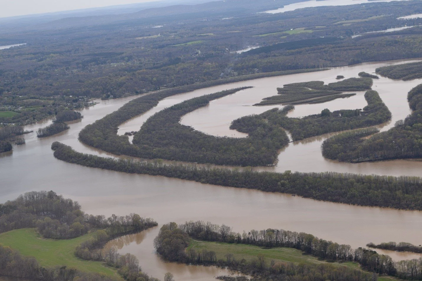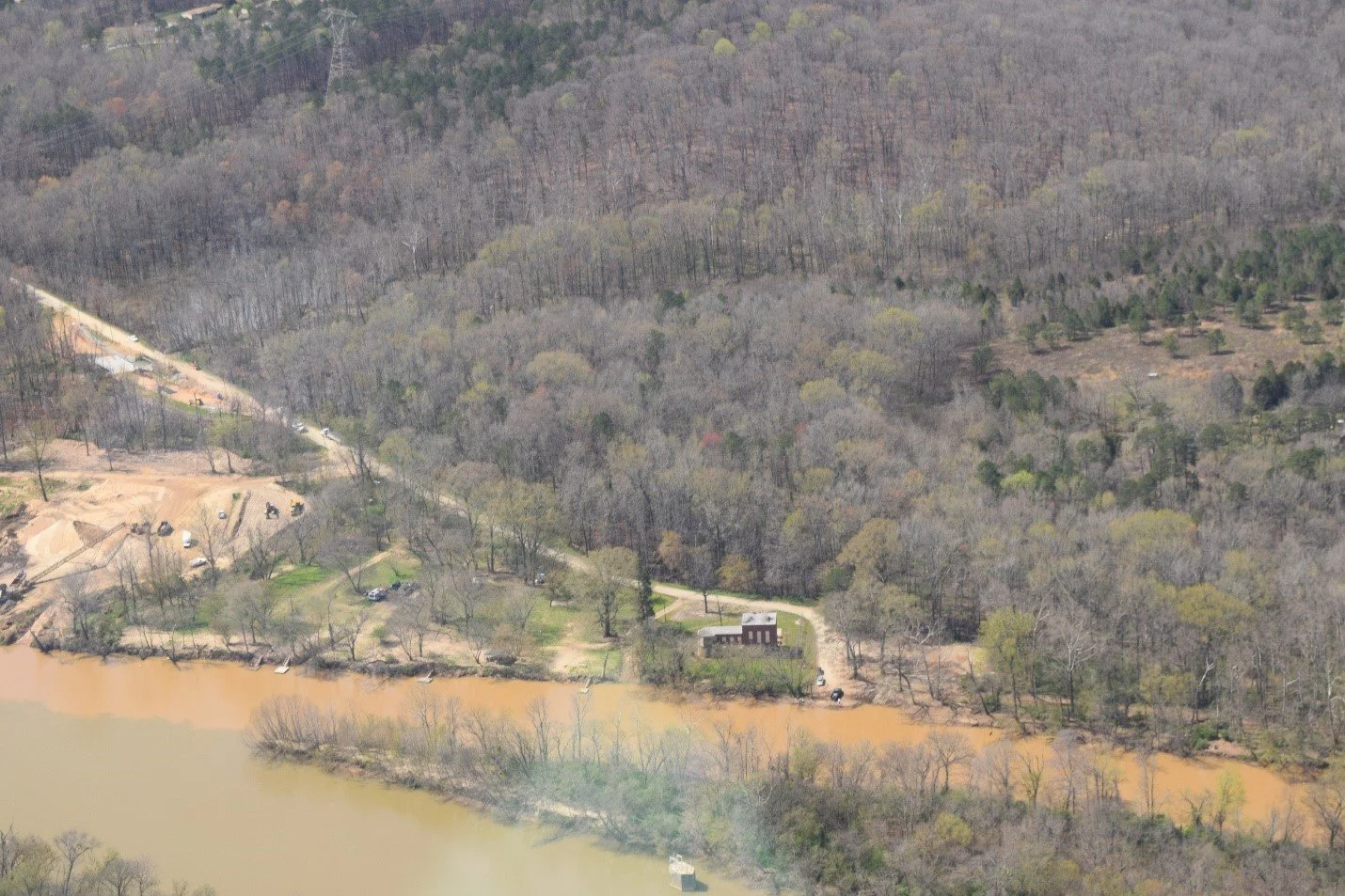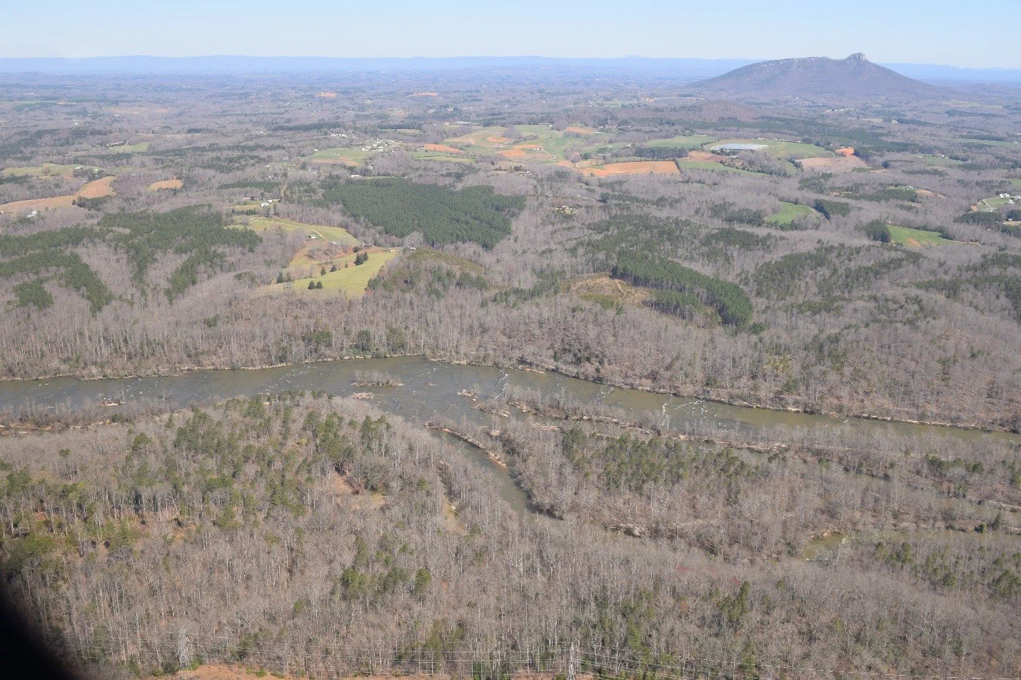 Yadkin Riverkeeper Edgar Miller took to the air again on March 25 with SouthWings pilot Holliday Obrecht, III and observer/YRK member Grace Broughton. The flight, provided by SouthWings and Mr. Obrecht, surpassed our expectations, yielding photos and insights to advance YRK’s major priorities, including enforcement of concentrated animal feeding operations or “CAFO” permits, assessment of existing and future river accesses on the Yadkin River State Trail and South Yadkin, and identifying other threats to the Yadkin and South Yadkin Rivers. The flights always remind us of the eternal beauty of the Yadkin watershed, its amazing history and the critical role it plays in sustaining our way of life. What follows is a series of photos highlighting many of the issues impacting the River taking off from the Davidson County airport near Lexington, flying upriver along the Davie/Forsyth border up to Yadkin, Surry and Wilkes counties and back down the South Yadkin over Alexander, Iredell, Davie and Rowan counties.