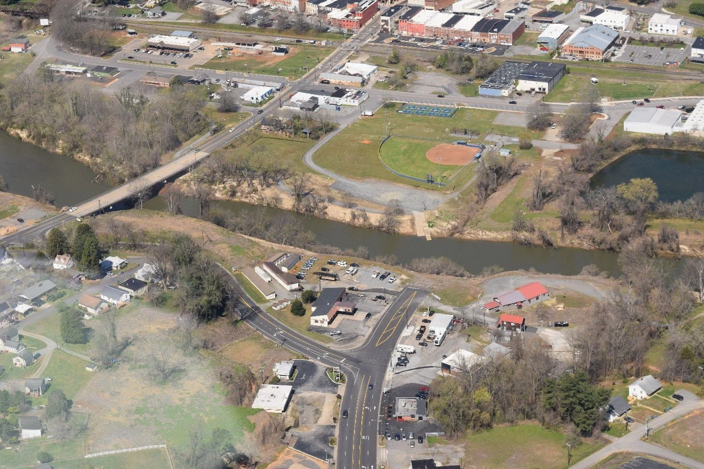 Burch Station access area off NC Highway 268 at the confluence of the Yadkin and Mitchell Rivers. Note the new 268 Bridge over the Mitchell top left-hand corner.