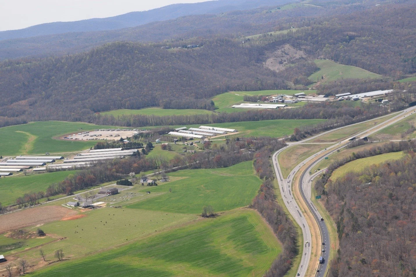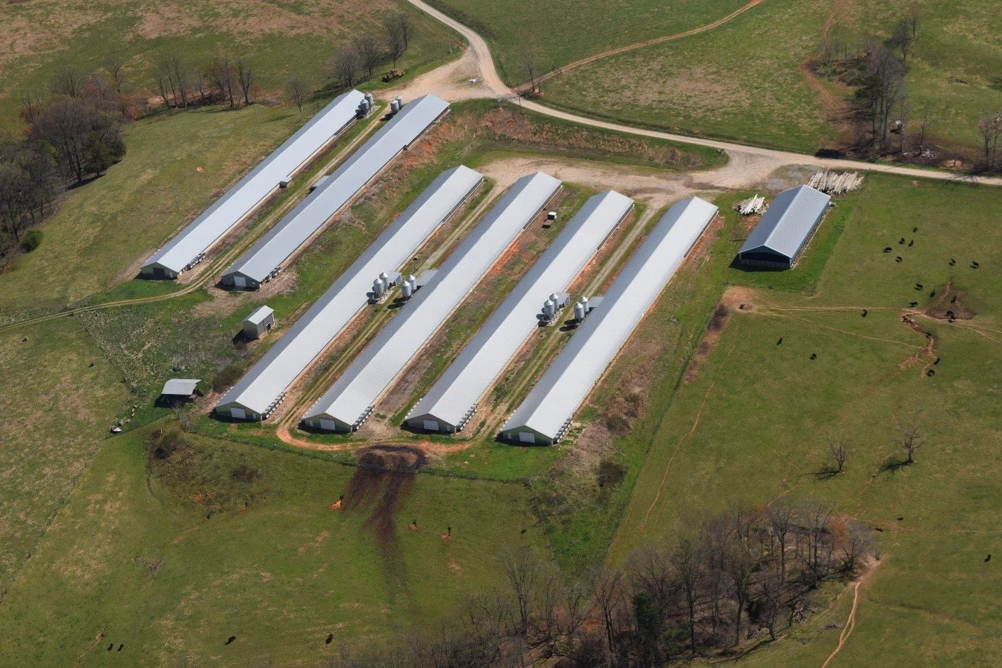 New poultry houses along Highway 421 in Wilkes County. The industry has seen an uptick in growth since 2018, with an estimated 290 million chickens produced annually in the Yadkin Pee Dee watershed according to the US Department of Agriculture. Over application of litter containing phosphorus on already saturated fields and subsequent runoff is a major cause of nutrient pollution in the River and High Rock Lake.