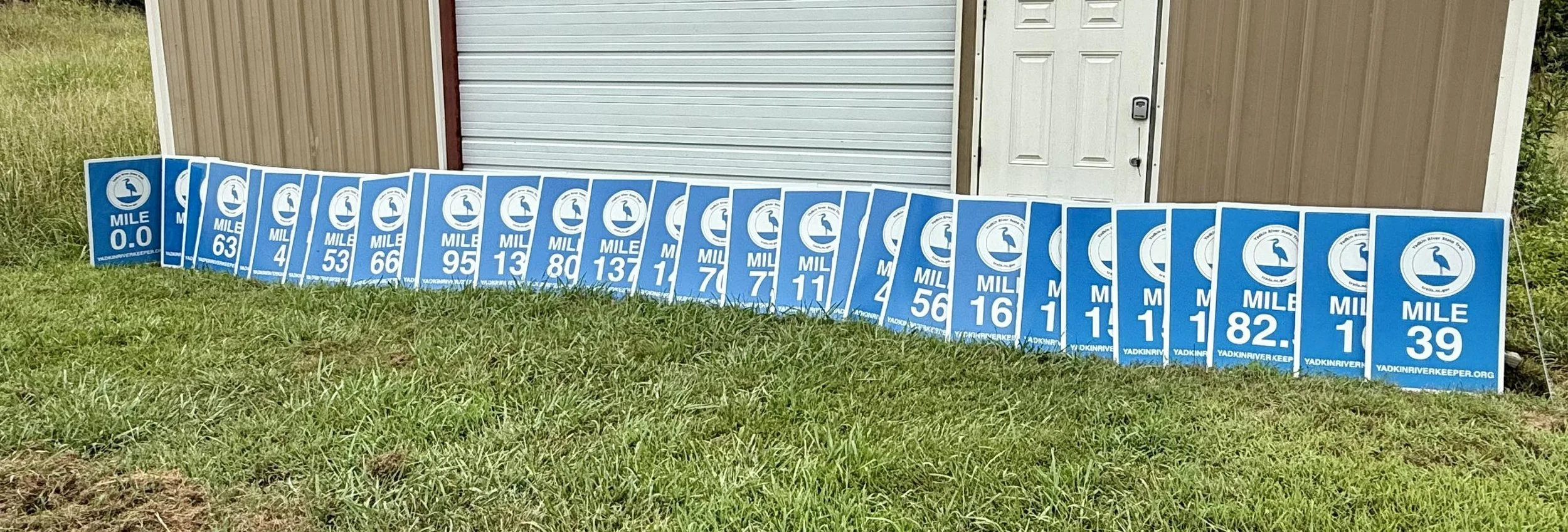 The Mile Marker initiative is meant to allow river goers of any type of vessel better awareness of where they are on the river. It will be useful for folks to reference when calling for help. At the moment, most of the Mile Marker signs are in waters adjacent to Yadkin County. They were the early supporters of the program. The most recent grant from the State of North Carolina has made it so Mile Markers can go up in any more places along the river. The Yadkin won’t have a marker every mile, but one every third mile, maybe. The database for these signs will be shared with EMS and be put on the base maps that EMS uses to organize search and rescue. This day we were putting up all the signs that Cube Hydro has given permission to put up.