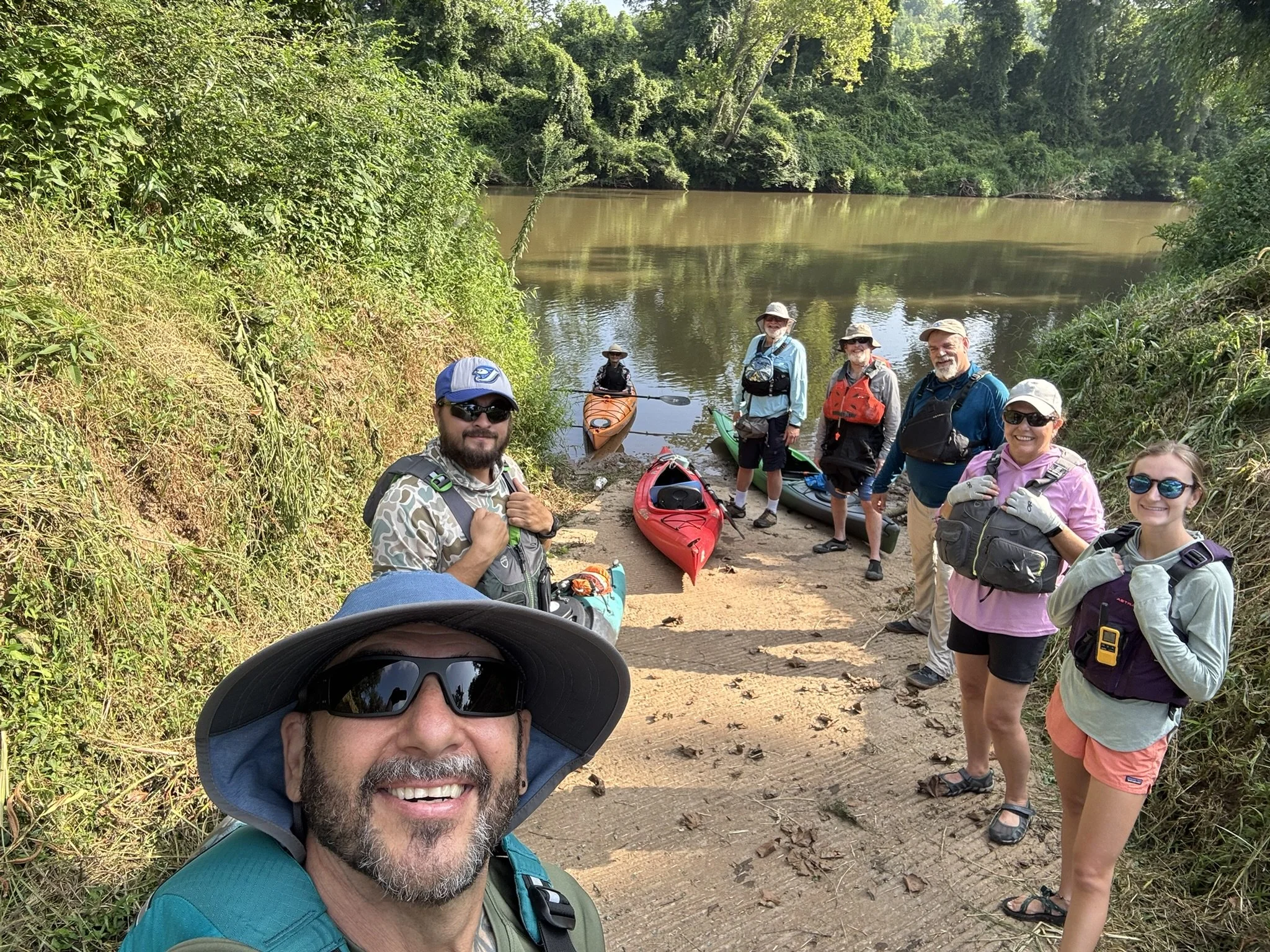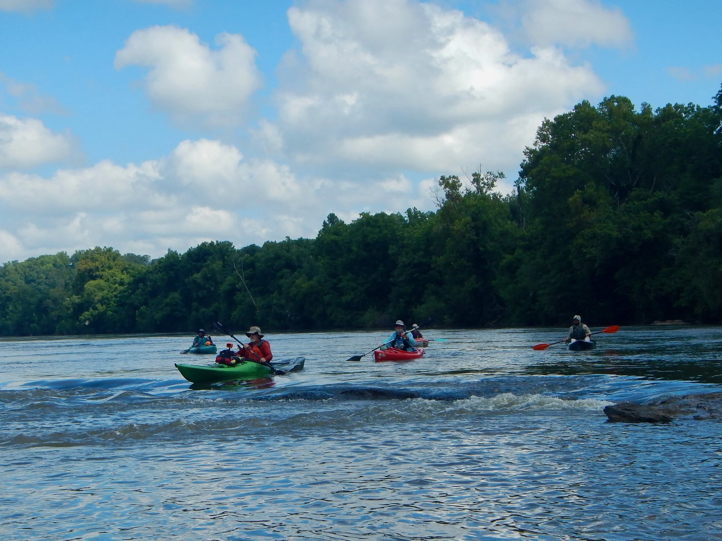 When preparing for a trip, the best you can hope for is to not create a situation that makes a bad experience, you know, dangerous conditions, not enough food, bad coffee. You really have no control over what makes a good trip, nice weather, good water level, good group of paddlers that want to paddle together. Our recent camping trip, August 8 - 10, was a GREAT trip! The participants got to the Pilot Mountain Ivy Bluff campsite and were set up before the staff arrived. Once YRK staff was there, we lit the fire and talked about paddle trips and what to expect for the next day. Once we turned in, the moon came up over the ridge and was so bright that headlamps were only needed for detail. We fell asleep to the river rushing through the shoals and moon shadows stretching across the ground.