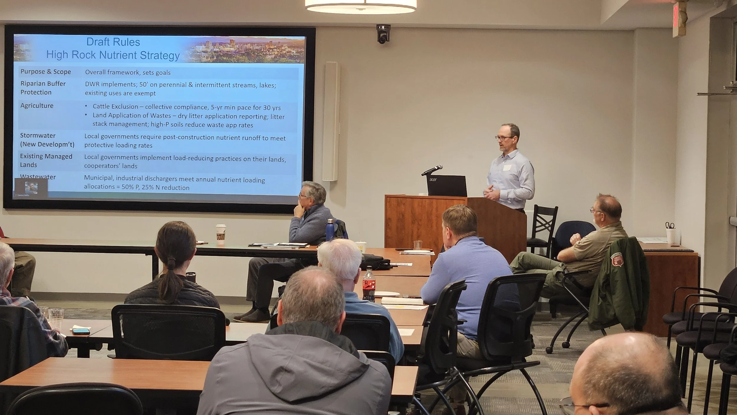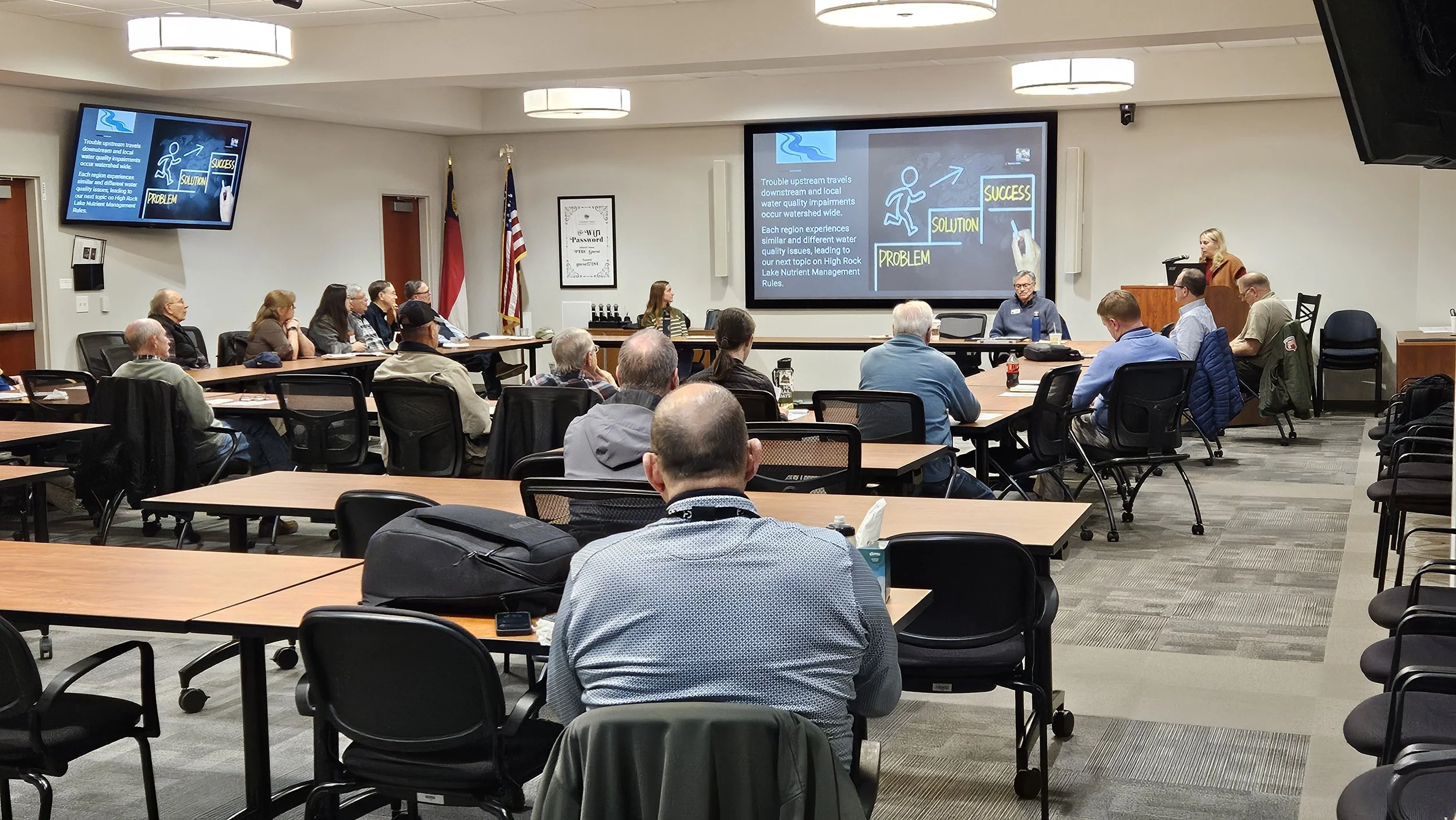 On February 23, 2026 Yadkin Riverkeeper (YRK) and Piedmont Triad Regional Council (PTRC) hosted the second forum of a series to inform stakeholders and local residents about water quality in their region and the High Rock Lake Rules, which are designed to reduce nitrogen and phosphorus from wastewater, stormwater and agricultural runoff in all waters that drain into High Rock Lake. This forum was designed specially for the Middle Yadkin subbasin in the Know Your Watershed portion, which includes Forsyth and Yadkin counties. The Know Your Watershed presentation covers water quality information of the region, like streams that are listed on NCDEQ’s 303d Impaired list, E.coli hotspots on the Yadkin River that threaten recreational safety, and large storm event impact and future preparedness. This part of the event highlights water quality trouble in your community, some of which can be remedied by the proposed solutions to runoff in the High Rock Lake Rules. We hoped to connect a downstream impairment to those upstream, showing how runoff is a watershed wide concern.