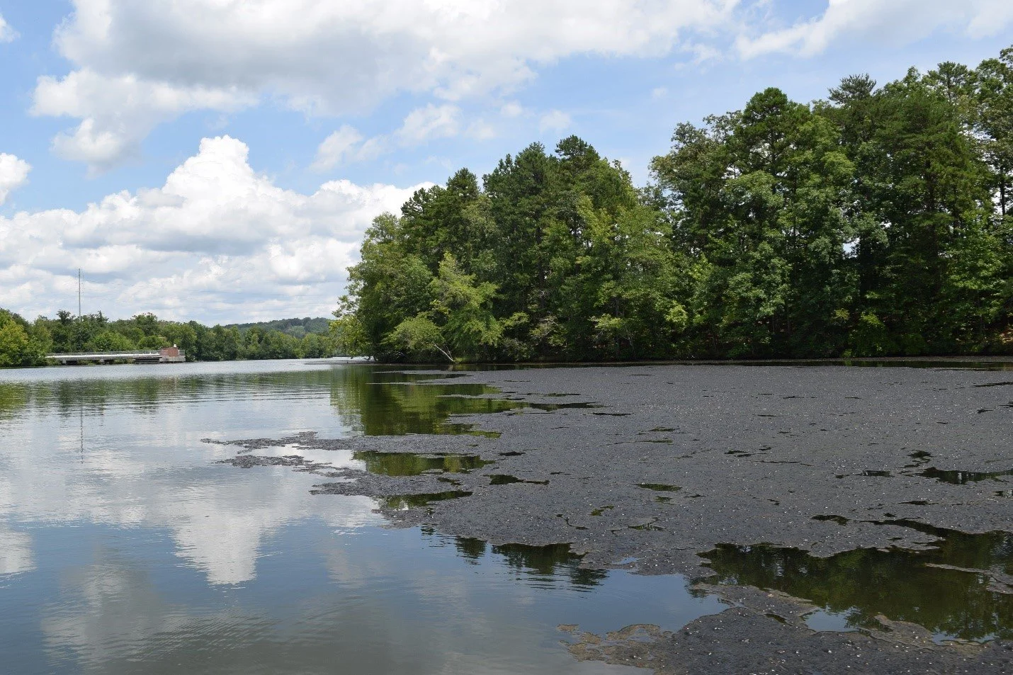 We also took the opportunity while on the Reservoir, to visit the newly constructed campsites near the Tuckertown Dam, as well as to survey the lake for microseira wollei (formerly know as lyngbya) or “black mat algae.” Technically a cyanobacteria, not an algae, the microseira can produce cyanotoxins that are harmful to humans, pets and wildlife.
