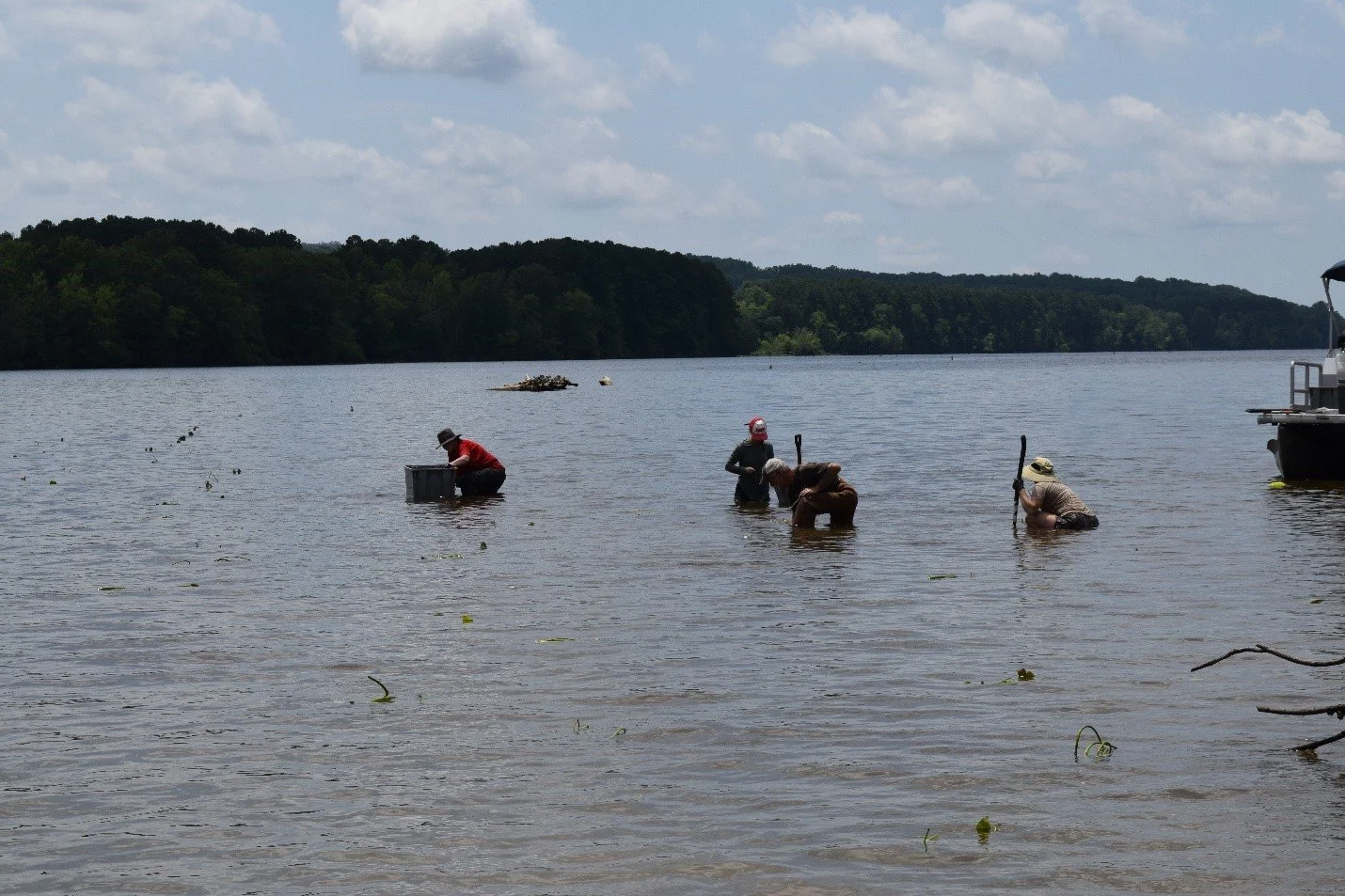 YRK staff recently had the opportunity to assist the NC Wildlife Resources Commission (NCWRC) in planting native Spatterdock (yellow water lily) submerged aquatic vegetation (SAV) on Tuckertown Reservoir on the Yadkin between Davidson/Montgomery and Rowan/Stanly Counties.