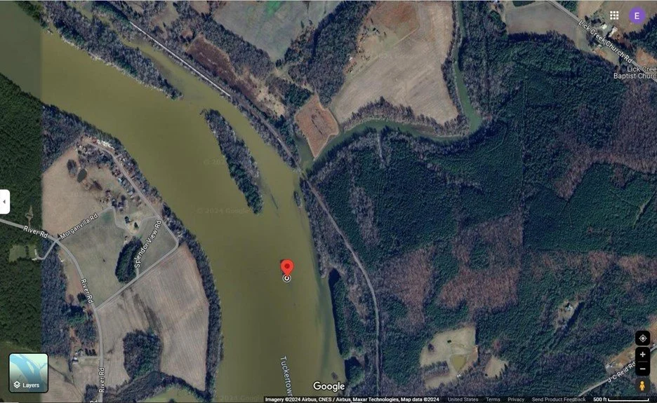 Location of NCWRC Spatterdock SAV plantings on Tuckertown Reservoir, approximately 2 miles down river from Bringle Ferry Road bridge.