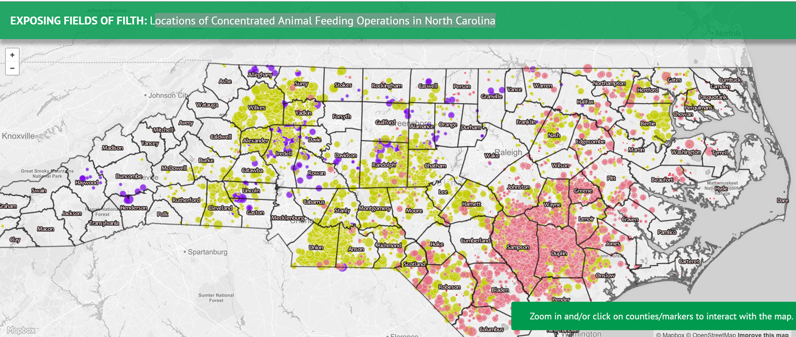 Locations of Concentrated Animal Feeding Operations in North Carolina